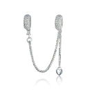 925 Sterling Silver Love Heart Safety Chain Charm For Bracelets