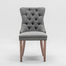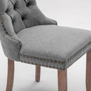 AADEN Modern Elegant Button-Tufted Upholstered Linen Fabric with Studs Trim and Wooden legs Dining Side Chair-Gray