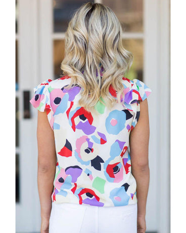 Azura Exchange Abstract Print Ruffle Sleeve Smocked Blouse - S