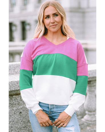 - Ribbed V Neck Color Block Patchwork Sweatshirt