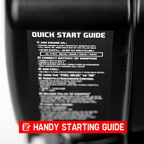 - Engine Oil Type: 10W-30 / 10W-40 / 15W-30 / 15W-40 non-synthetic engine oil (not included with purchase)
