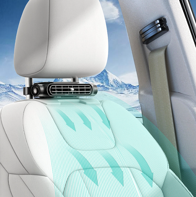 Enhance the comfort of your car's rear passengers, especially during hot days, with our innovative Car Seat Headrest Fan. This sleek, bladeless fan easily attaches to the back of your car's headrest, providing a refreshing breeze to those in the back seat. Powered by USB, it offers three adjustable fan speeds and utilizes turbine technology for concentrated airflow, ensuring a cool and pleasant journey for everyone.