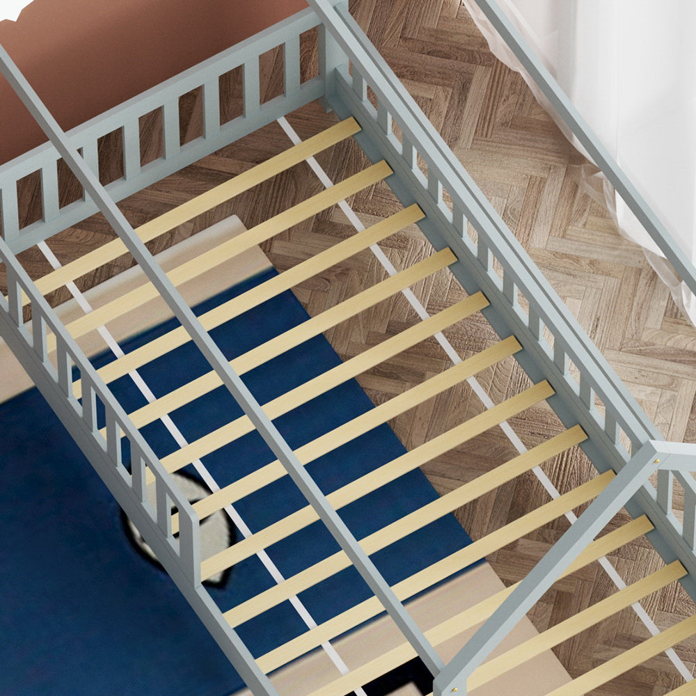 Create a cosy sanctuary for your kids where they'll love retiring after a long day of play and study with Artiss Rock bed frame. It features a gorgeous house-shape design that will add an elegant and classic touch to your child's bedroom. The bed frame is crafted from solid pine wood, which makes it quite sturdy in addition to its elegant looks. It comes with heavy-duty steel fixings and reinforced bracket support for ultimate stability and prevents shaking. This bed frame has a slatted base. The slats are well-placed, which allows proper ventilation and prevents build-up of bacteria and germs. Furthermore, Artiss Rock bed frame comes SGS-tested with non-toxic paint finish that ensures your child's safety, and the smooth finished edges prevent from any accidental injuries. It also comes with side rails of ideal height that prevents falls while asleep. The Artiss Rock bed frame has been thoughtfully designed. It's easy to keep clean and maintain. Just a simple wipe with dry cloth will do the job. Bring home this Artiss Rock wooden bed frame for your kid's bedroom today.