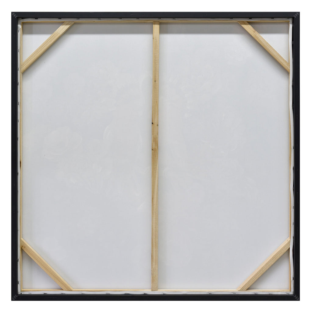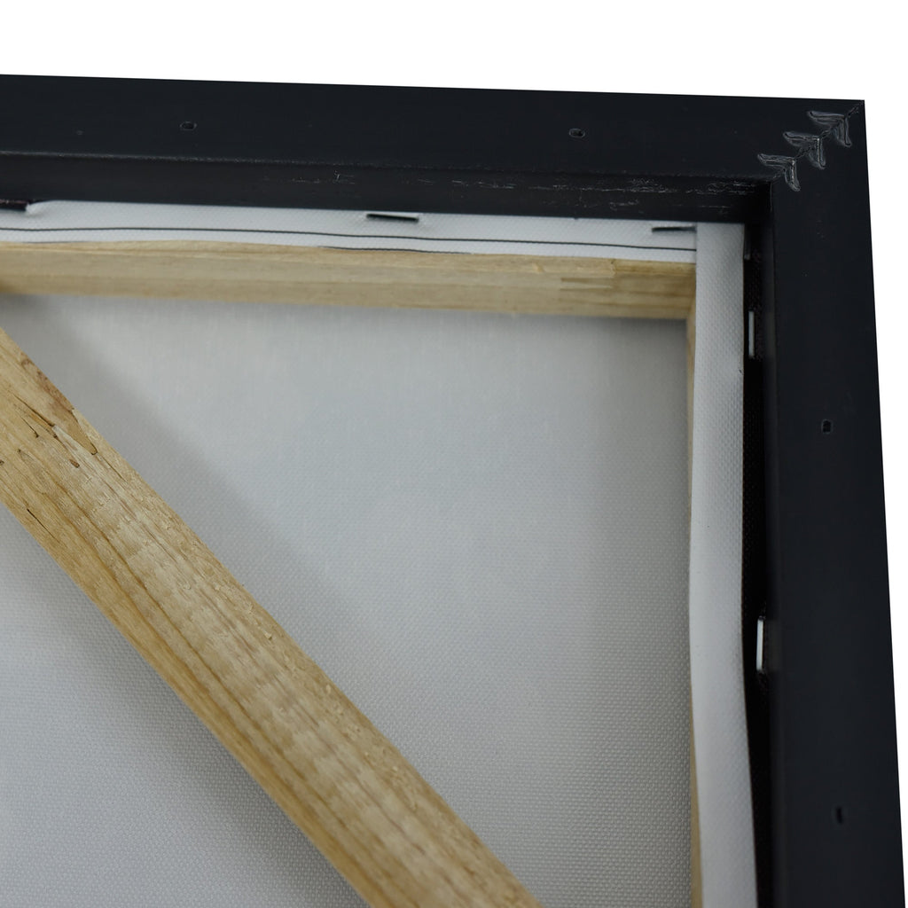 Stretched and gallery wrapped around a wooden stretcher and finished with a floating frame. There is a gap between the frame and print, which creates the floating effect and literally makes the canvas print stand out even more.