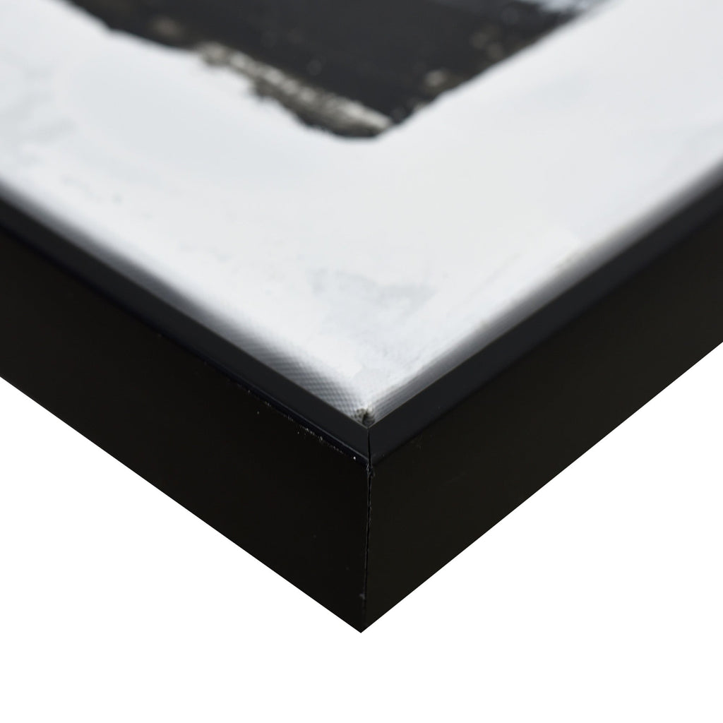Stretched and gallery wrapped around a wooden stretcher and finished with a floating frame. There is a gap between the frame and print, which creates the floating effect and literally makes the canvas print stand out even more.