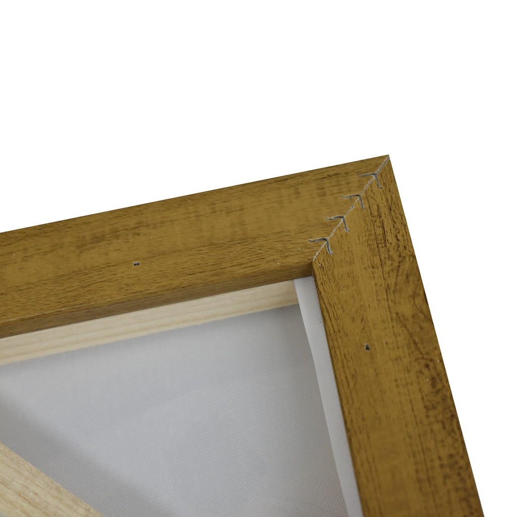 Stretched and gallery wrapped around a wooden stretcher and finished with a floating frame. There is a gap between the frame and print, which creates the floating effect and literally makes the canvas print stand out even more.