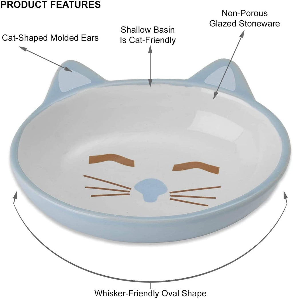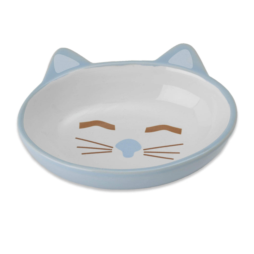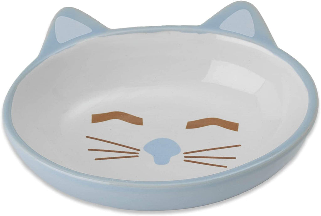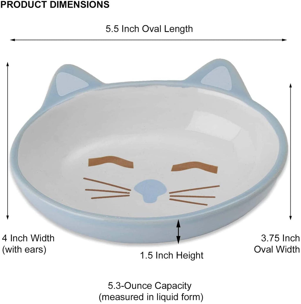 PetRageous 81026 Here Kitty Cat Bowl- Oval Blue 13cm, Blue, 5.5"/5.3 oz.