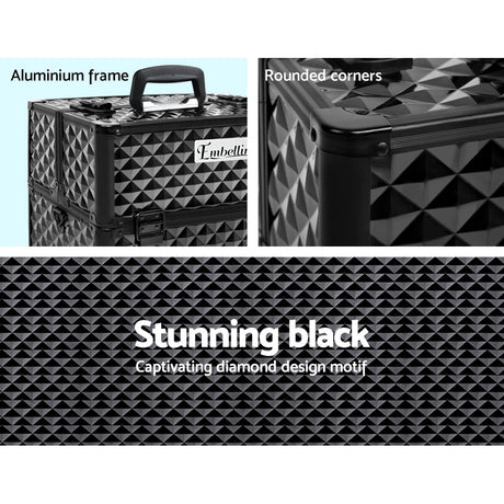 Embellir Portable Cosmetic Beauty Makeup Case - Diamond Black