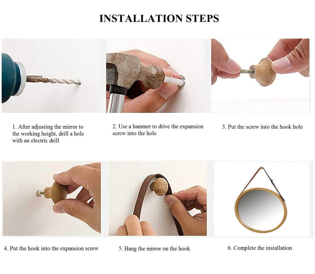Adjustable leather Strap: The artificial leather strap of the circle mirror is adjustable, convenient to adjust the mirror to a suitable level to anyone.