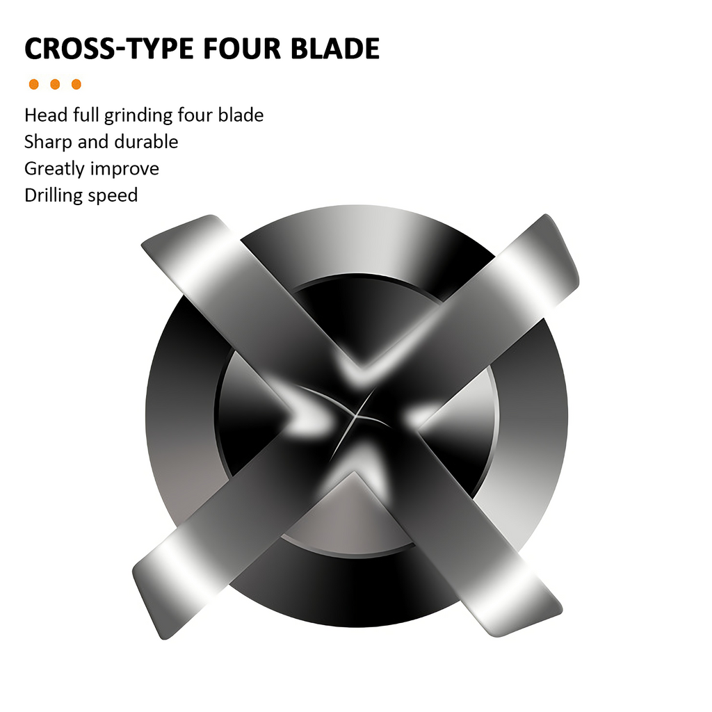 The tip is 4-blade design, sharp blade can make the work more efficient and fine. U shape spiral chip flute design, drill more smoothly