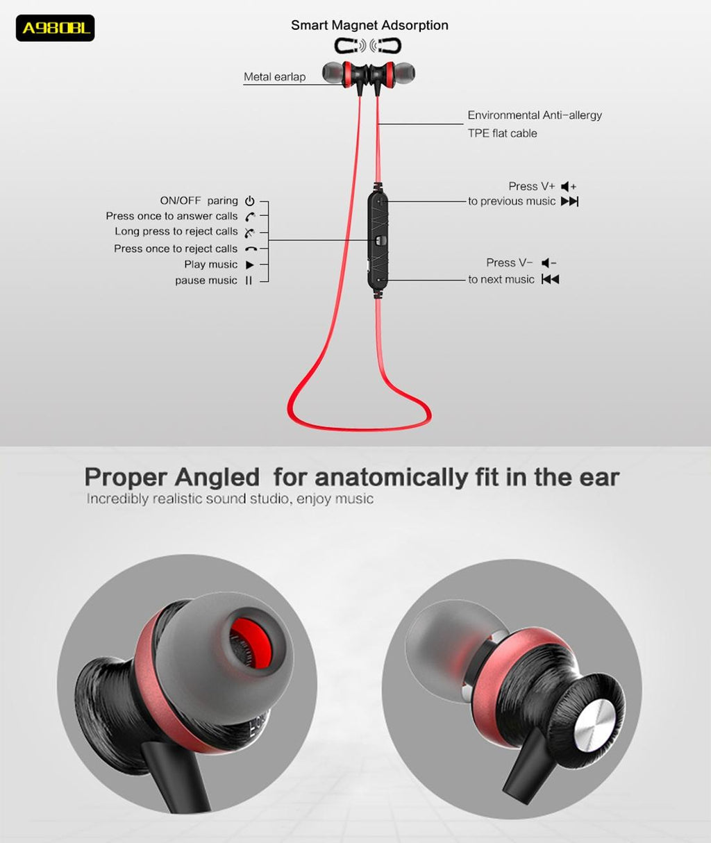 • 1 x A980Bl Wireless Sport Magnetic Bluetooth Earphone With Wire Control