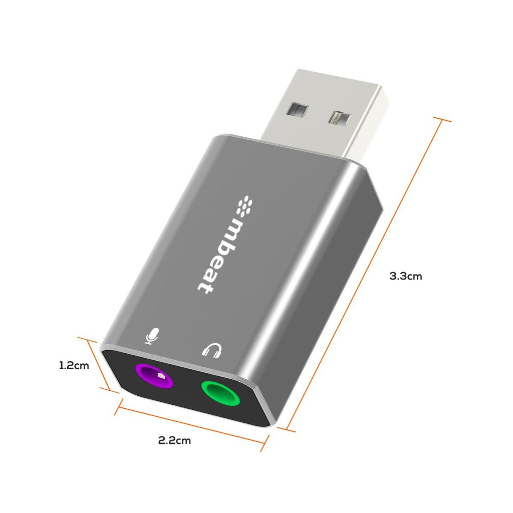 mbeat Elite USB to 3.5 Audio and Microphone Adapter - Space Grey