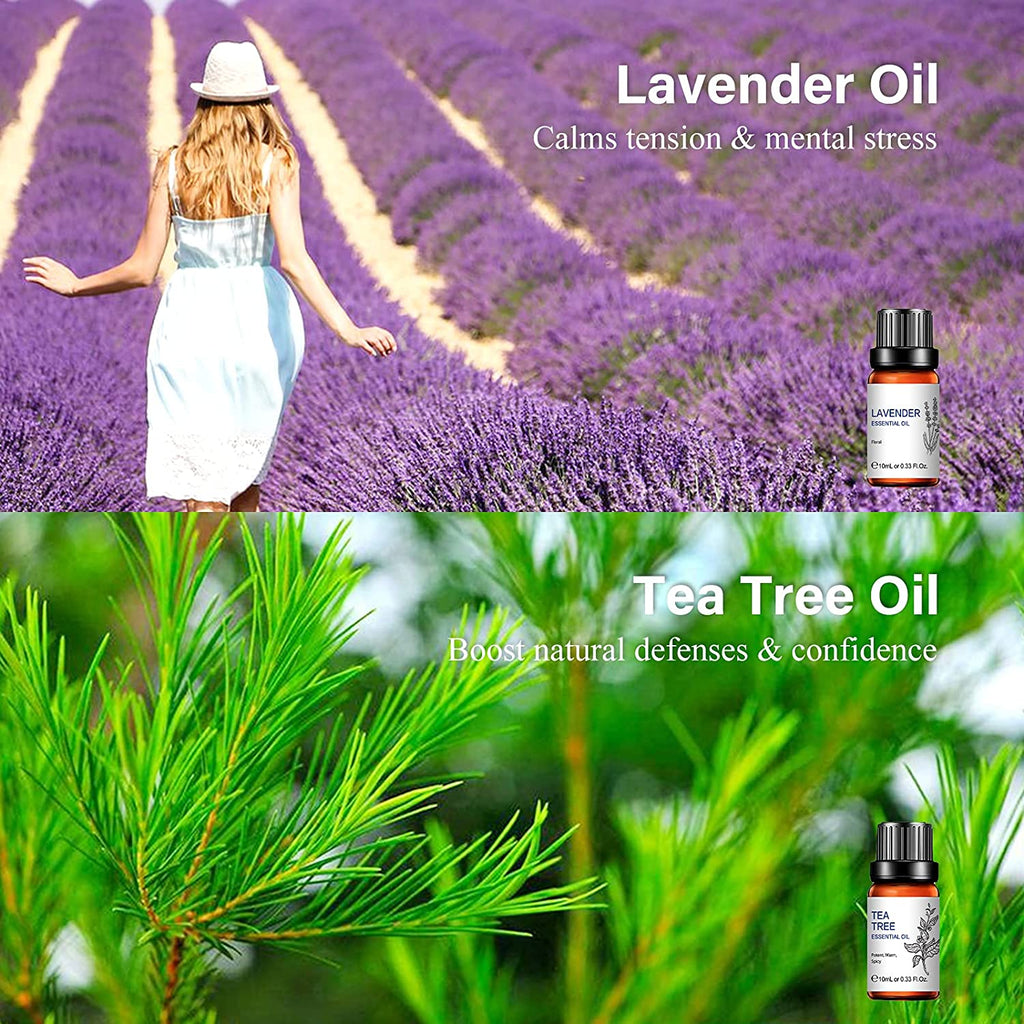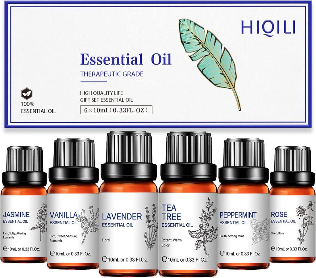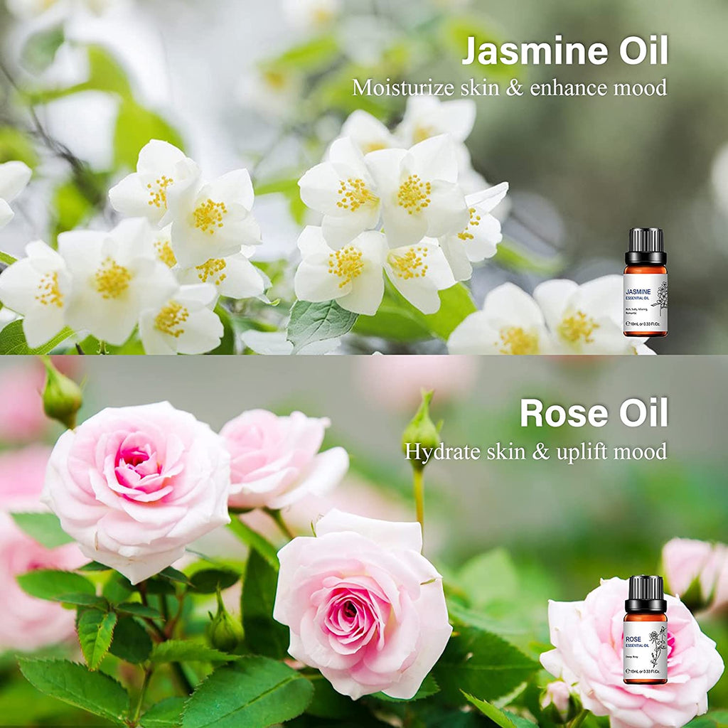 Essential Oils Set of 6-Tea Tree, Lavender, Peppermint, Vanilla, Jasmine, Rose Essential Oil Gift Set for Valentine's Day, Diffuser, Humidifiers, Skin, Hair, Massage Daily Essential
