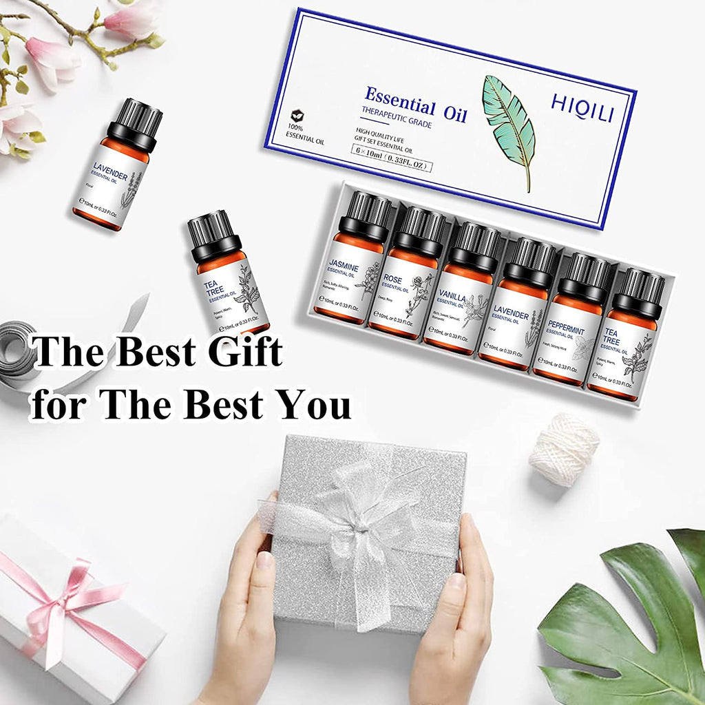 This incredible essential oils gift set contains the 6 most valuable essential oils on the earth: Tea Tree,Lavender,Peppermint,Vanilla,Jasmine,Rose.Handpicked the best sources selection from different parts of the world
