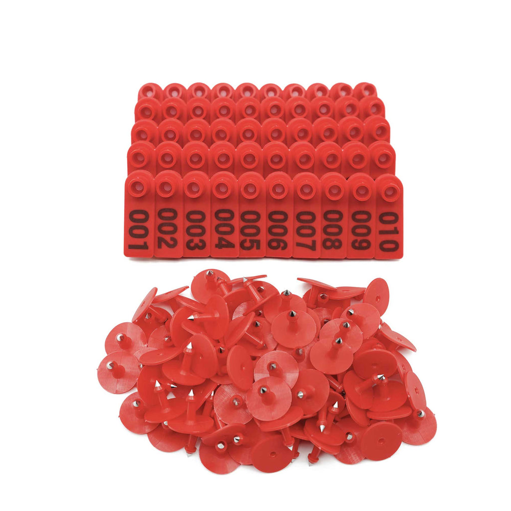 1-100 Cattle Number Ear Tag 5x2cm Set - Mini Red Cow Sheep Pig Livestock Label