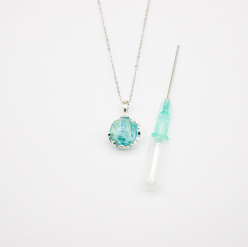 Gift Gox - Aroma Necklace White Gold - Planet Celestial Aqua (Light Blue) + Purify Oil Blend