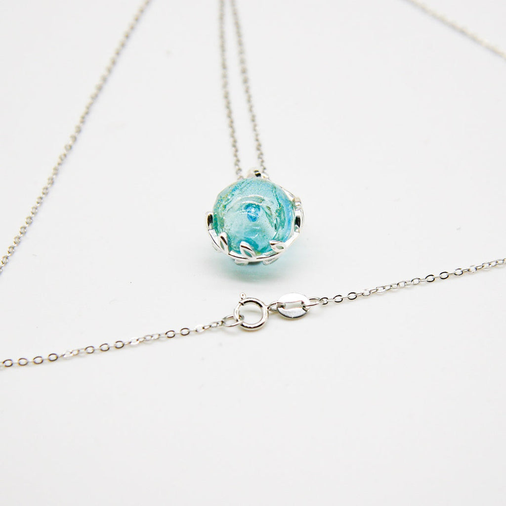Serving as both a statement piece and a practical accessory, the glass ball doubles as a container for a drop of essential oil, allowing you to diffuse your favorite scent effortlessly on the go. Embodying beauty, versatility, and functionality, this necklace is a timeless addition to any ensemble, ensuring you feel happy, calm, content, and confident on all occasions.