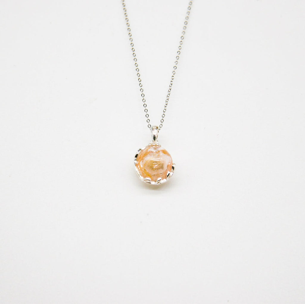 Elevate your style with our stunning new Planet Aroma Necklace, a harmonious blend of exquisite design and timeless aroma. Crafted with care, the pendant and chain gleam in 18k white gold plating, while the Murano glass pieces are meticulously hand-blown, each adorned with delicate gold flakes resembling celestial bodies with beauty beyond imagination.