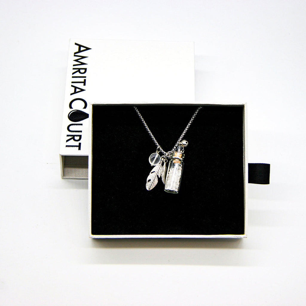 Our designer has smartly combined the beautiful crystal with the luxury of jewelry. On top of it, make it diffusing jewel when you walk around with your favorite aroma, beauty and energy. Using the tool contained, the delicate crystal bottle necklace?is used to store a few drops of essential oil which will diffuse gently through softwood to create an atmosphere of protection and aroma when you are on the go.