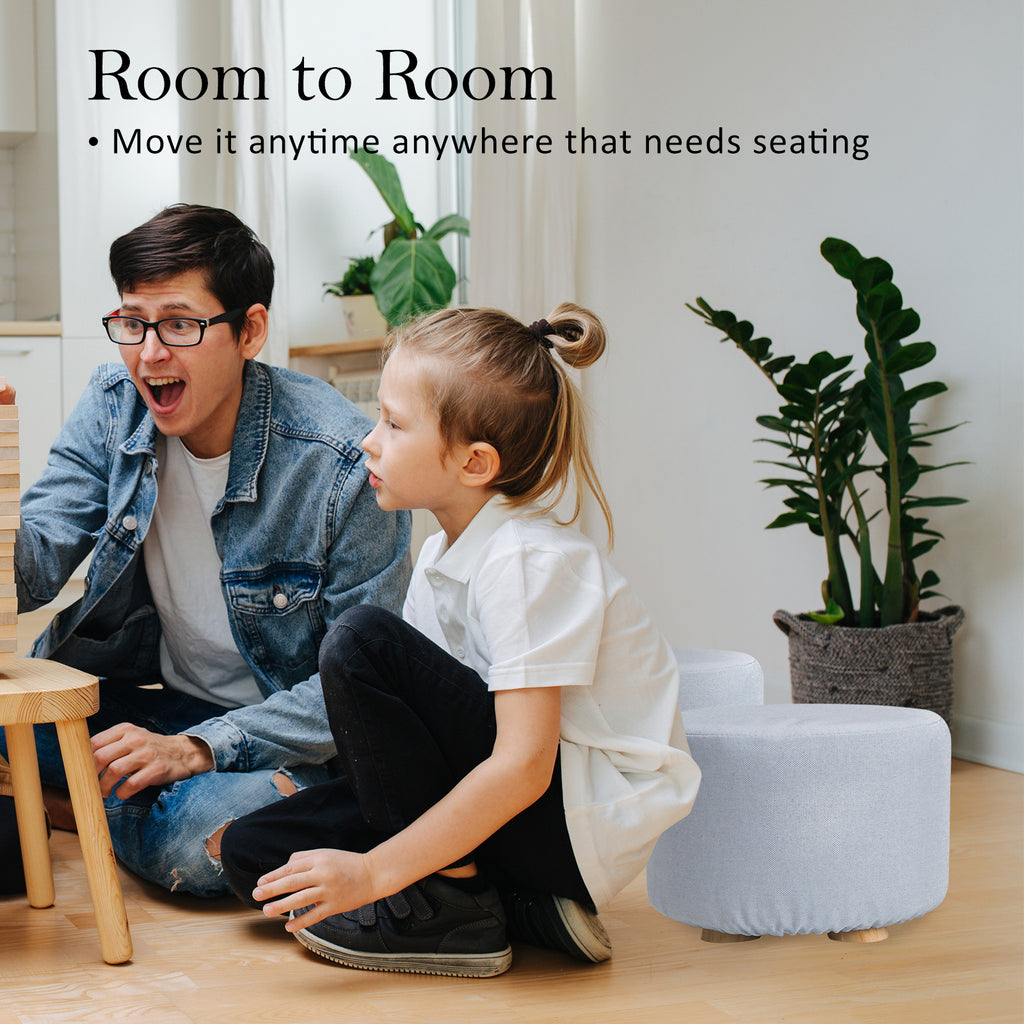 La Bella 2 Set Ottoman Round Stool Fabric Wooden Leg Foot - Light Blue
