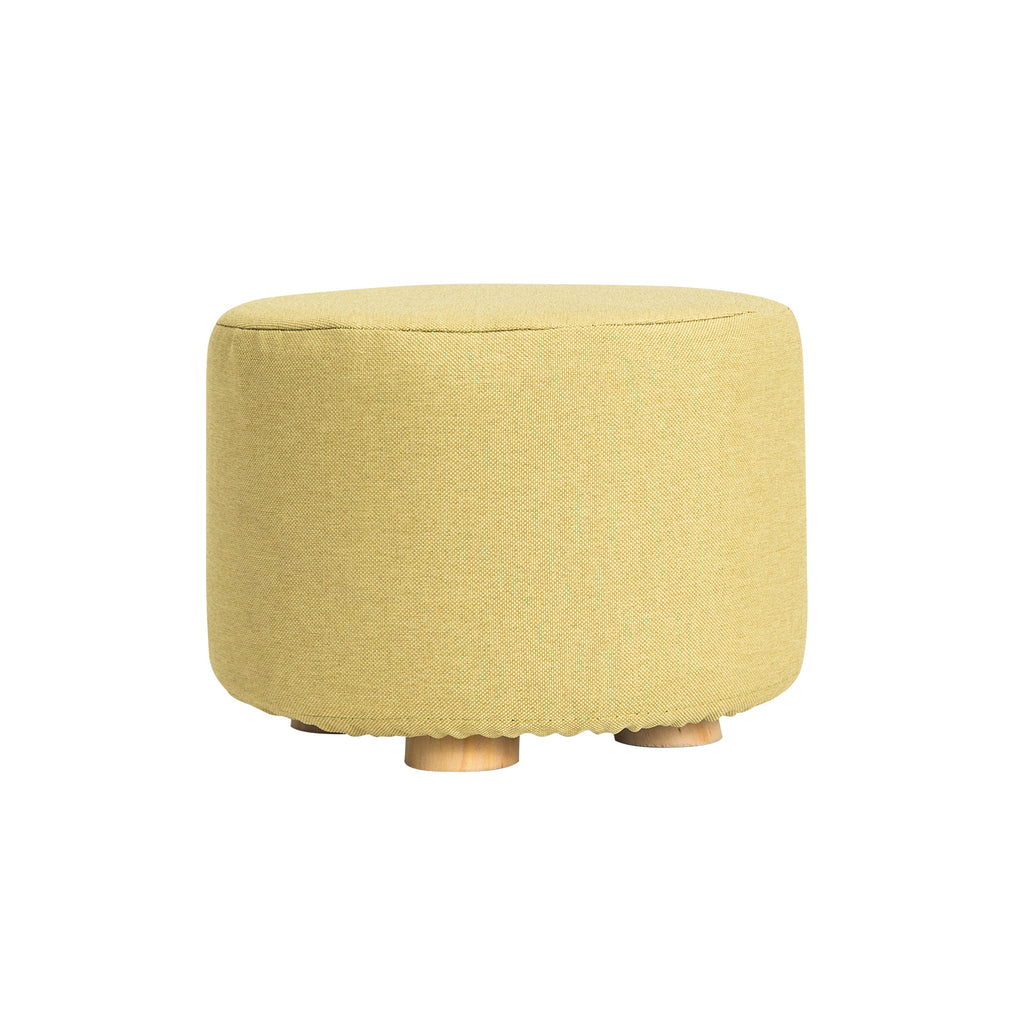 La Bella Mustard Yellow Fabric Ottoman Round Wooden Leg Foot Stool
