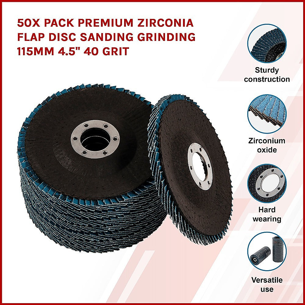 50x Pack Premium Zirconia Flap Disc Sanding Grinding 115mm 4.5" 40 Grit
