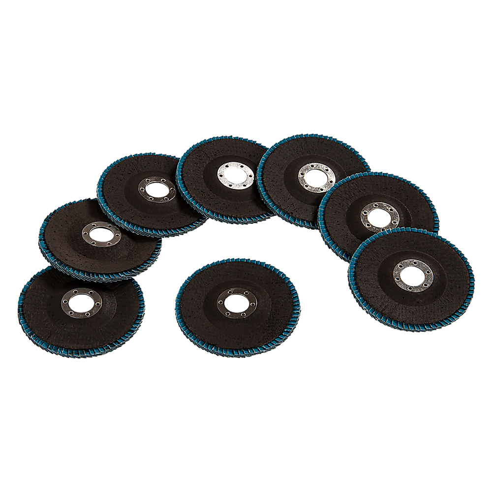 Get a finer finish with the increased precision flap discs can provide, even on uneven surfaces. Enjoy less fatigue due to vibration, as well as cooler operation, with fewer heat marks and a higher degree of safety than regular grinding wheels. Don't wait to give your work that finishing touch. Buy your set today!