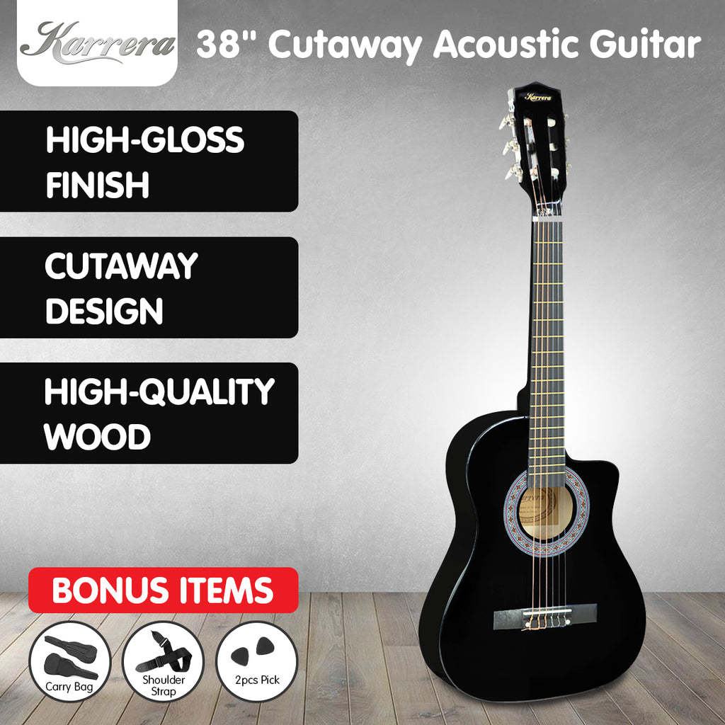 These 38-inch acoustic guitars are finely crafted for beginner to intermediate-level players. The Karrera high-gloss polished finish and excellent build quality of this hand-crafted instrument will really impress.