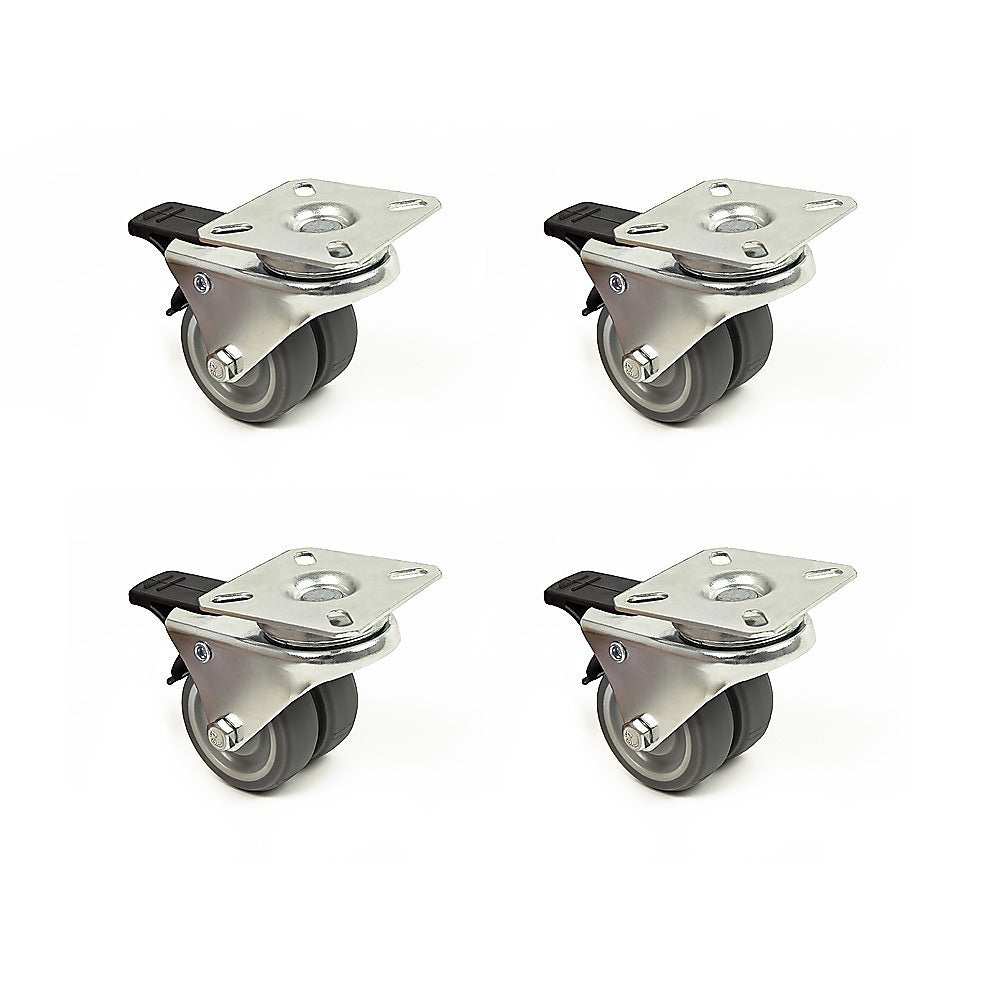 4 x 2" Heavy Duty Swivel Double Wide Castor Wheels Trolley 50mm Furniture Rubber With Brake