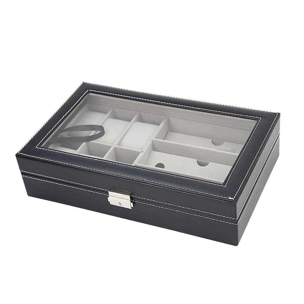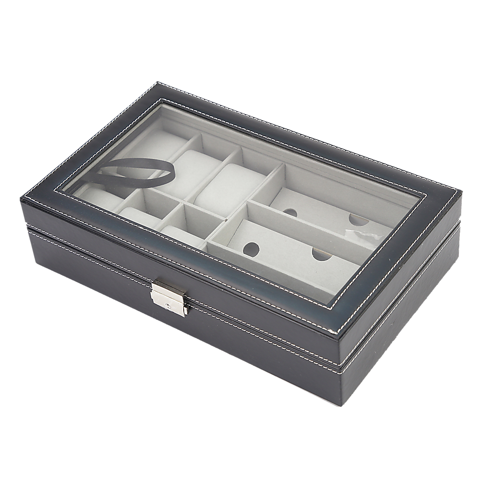 Six watch compartments and three glasses compartments store these fashion accessories in style, while a lock keeps all your treasures safe. In neutral black, this storage case and organiser will go with almost any décor.