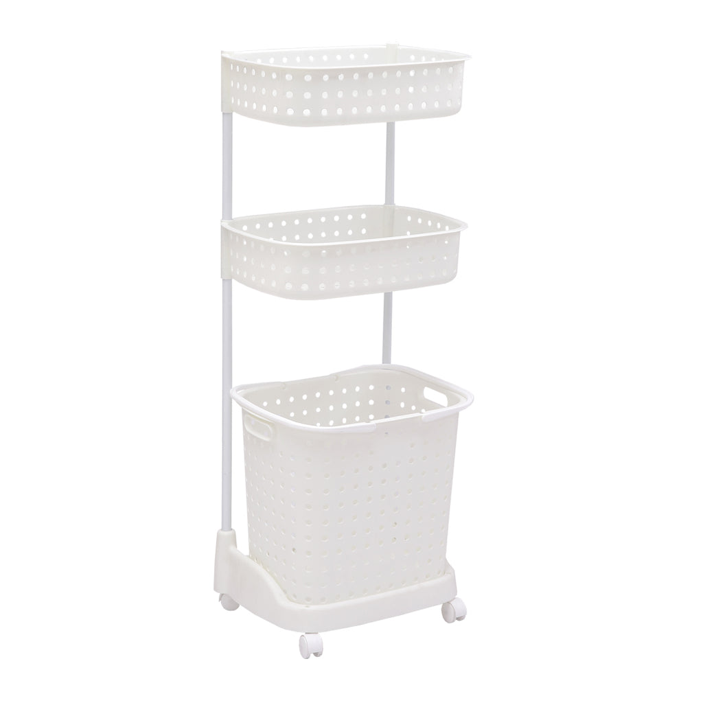 3 Tier Bathroom Laundry Clothes Baskets Bin Hamper Mobile Rack Removable Shelf