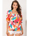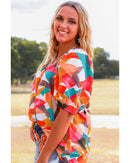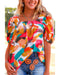 - Multicolor Square Neck Abstract Print Short Sleeve Blouse