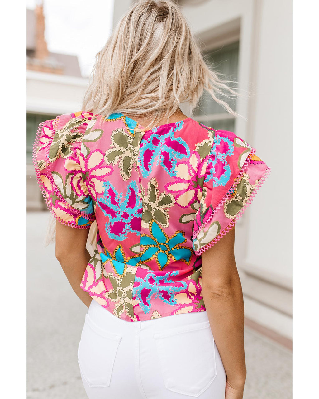 Azura Exchange Vibrant Floral Print Ruffle Sleeve Blouse - S
