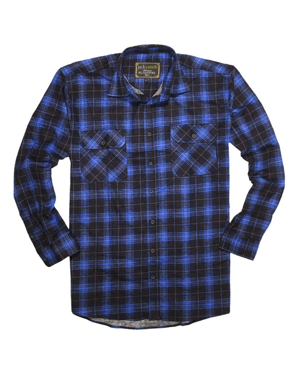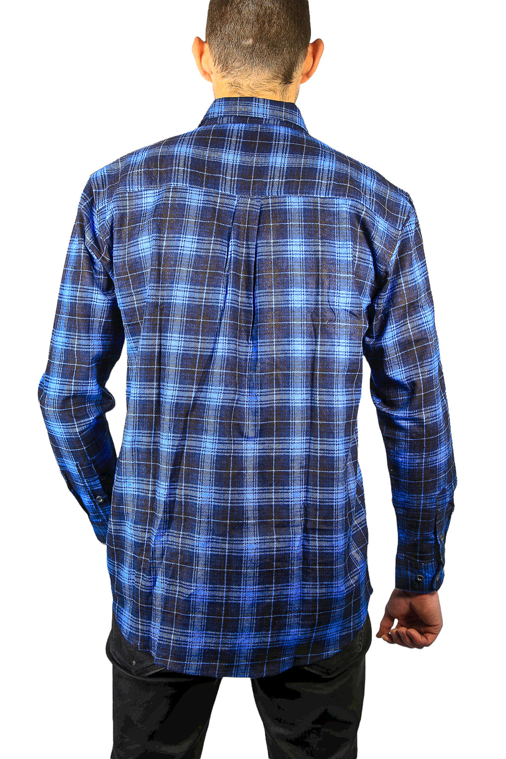 Mens 100% Cotton Flannelette Shirt Long Sleeve Check Authentic Flannel - Blue