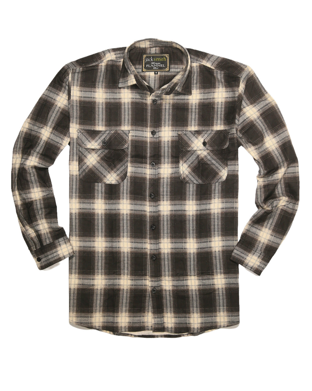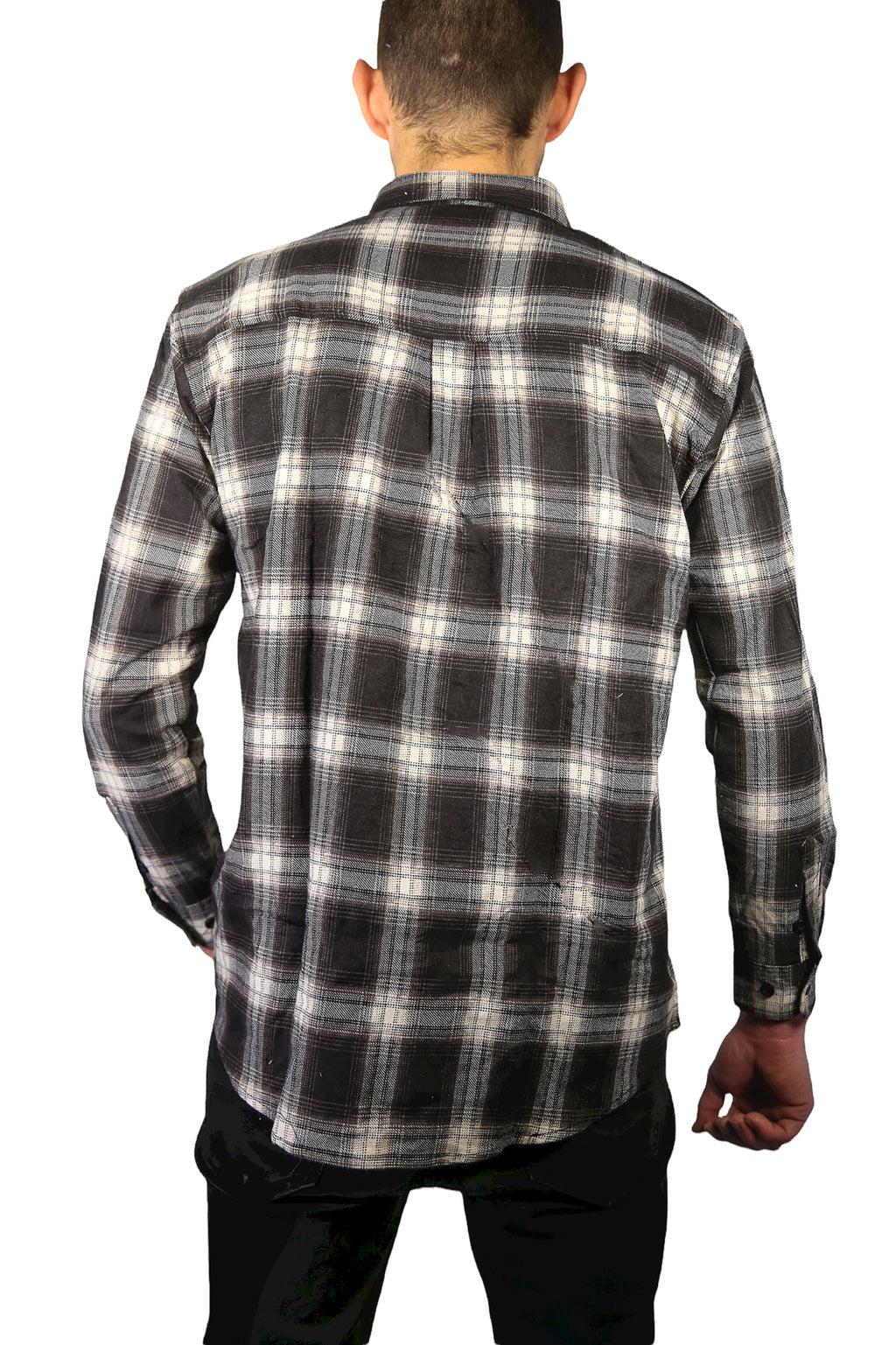 Mens Flannelette Long Sleeve Shirt 100% Cotton Check Authentic Flannel - Full Placket - Black