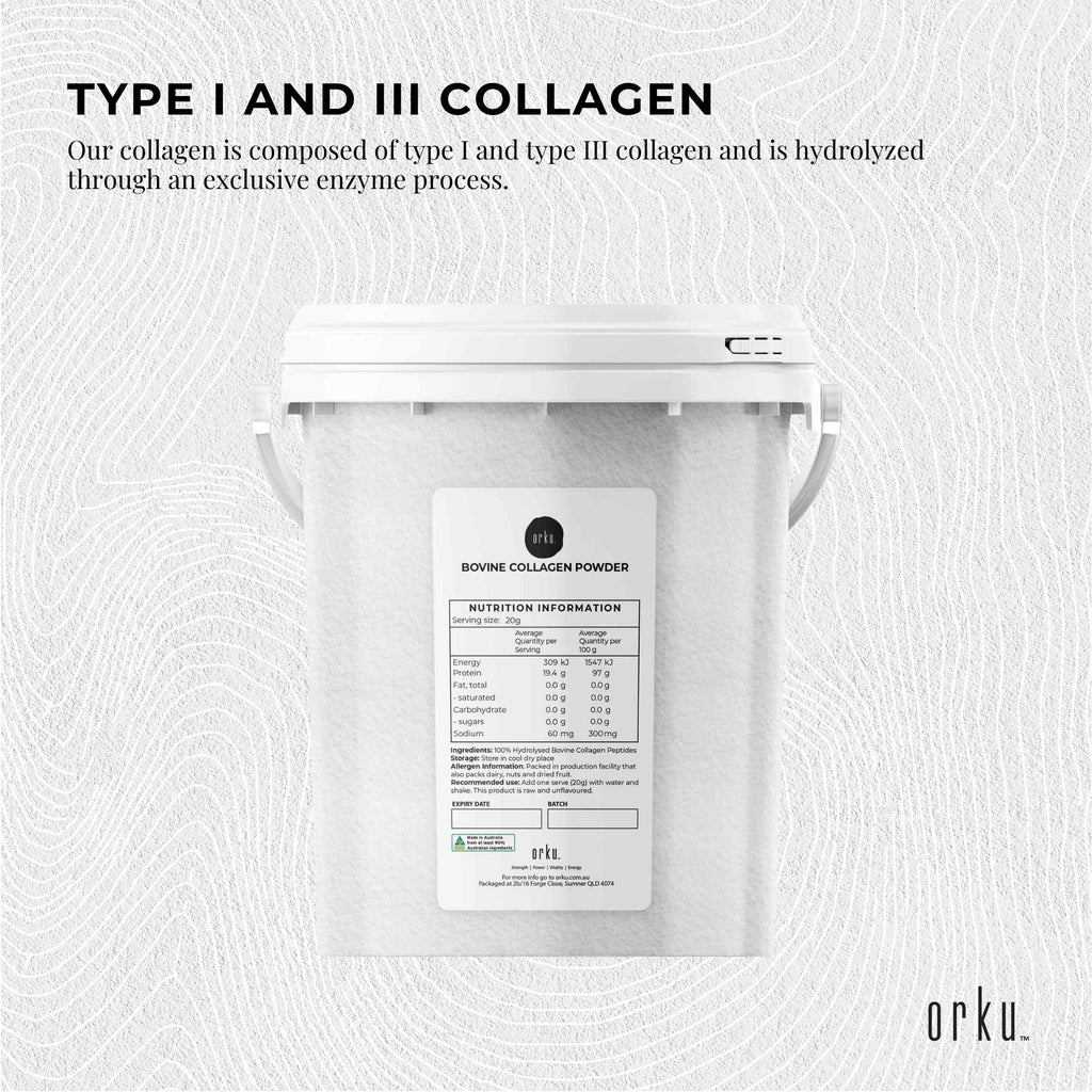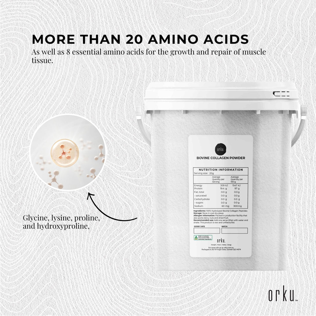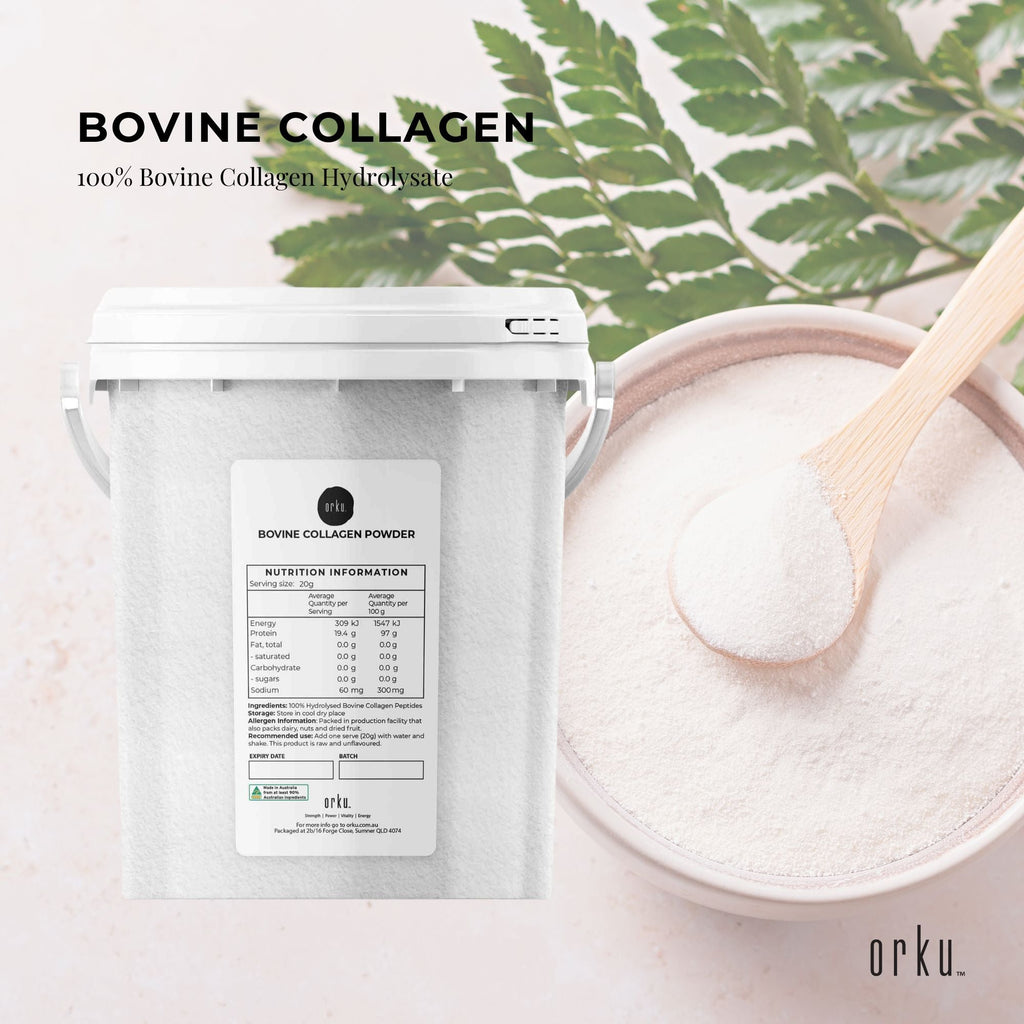 Orku Bovine Collagen Hydrolysate is a bioactive peptide protein that supports the body's own collagen found in bones, joints, skin, hair, and nails.