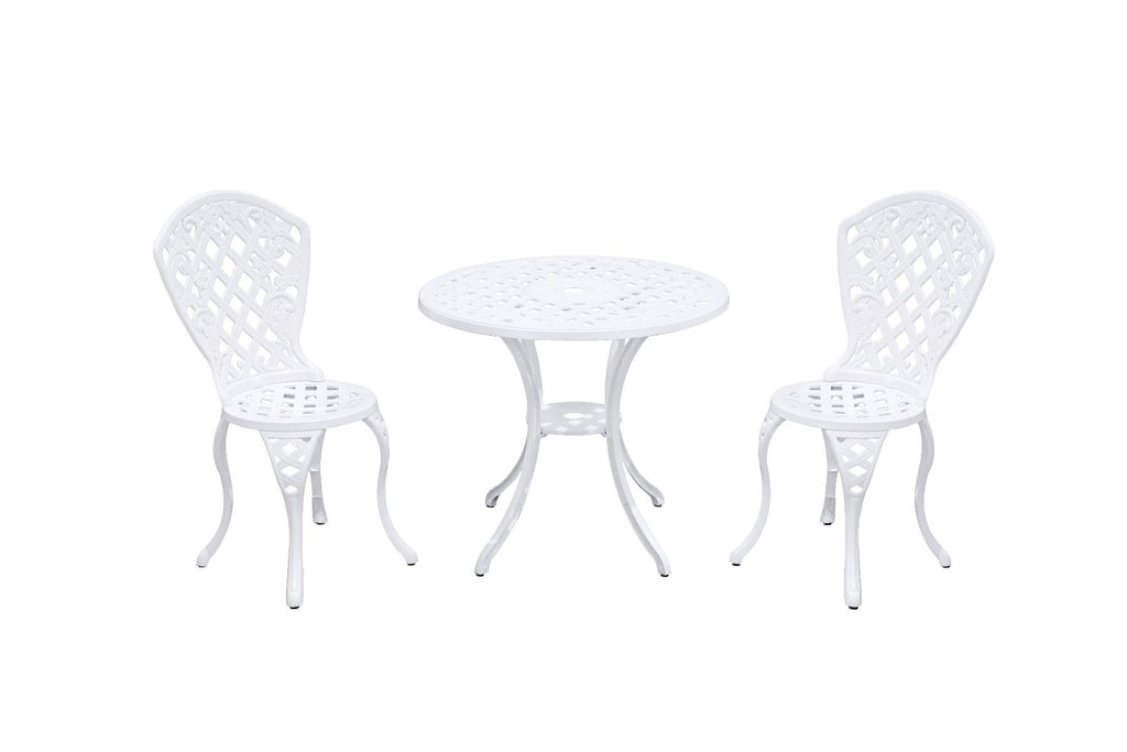 Enhance your patio, garden, or balcony with this stylish Aluminum 3-piece set. Featuring two comfortable chairs and a sleek table, this set combines contemporary design with robust construction for a perfect outdoor solution.