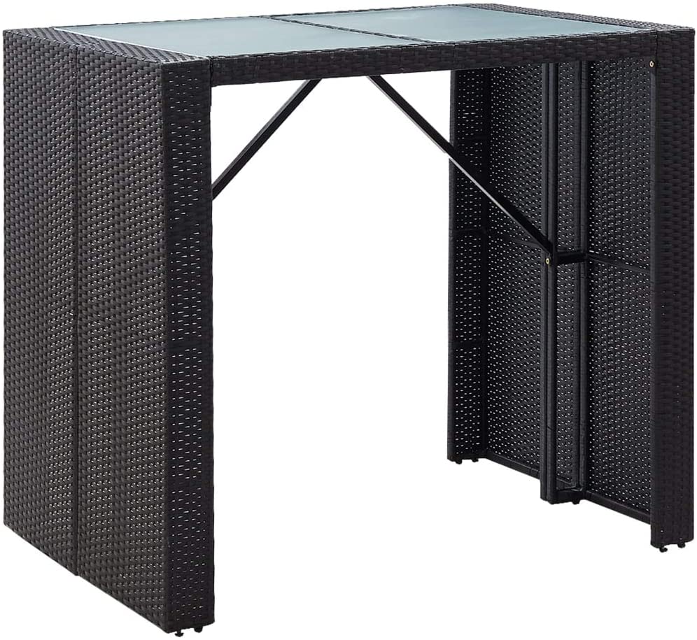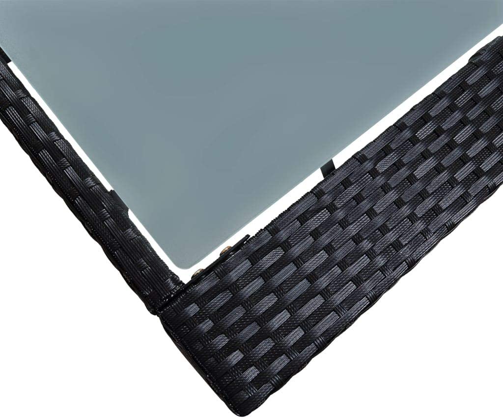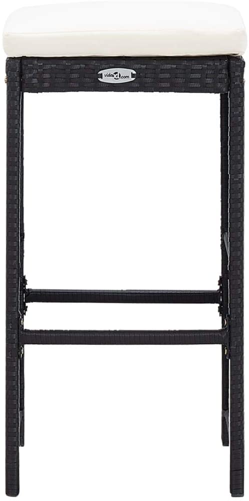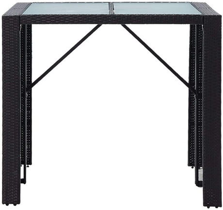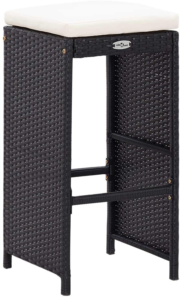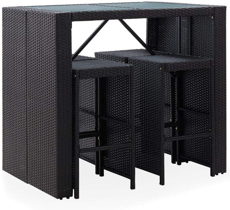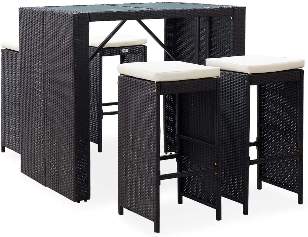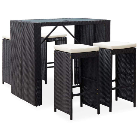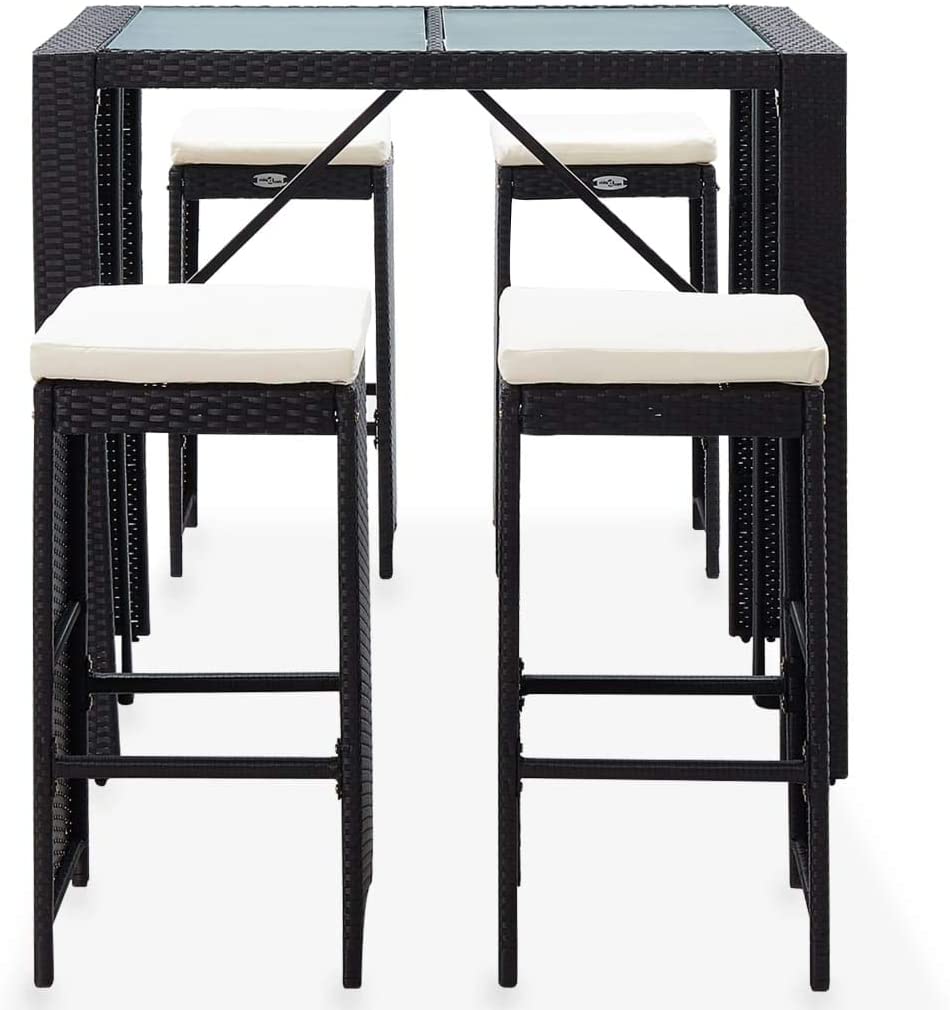 Outdoor Bar Set 5 Pieces with Cushions Garden Patio Backyard Porch Balcony Furniture Table and Stool Poly Rattan and Glass Black 5 pcs