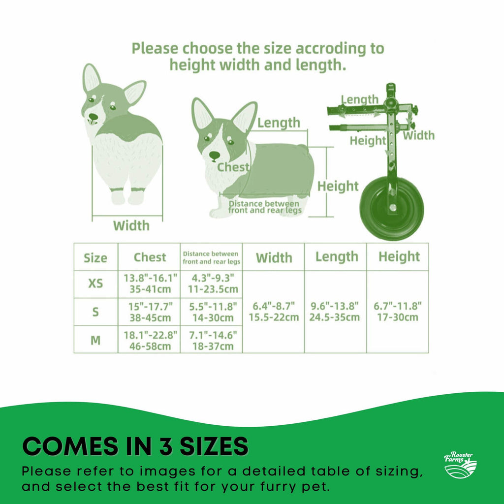 The Rooster Farms Dog Wheelchair is designed to enhance your dog's quality of life, helping them enjoy daily activities and regain confidence.