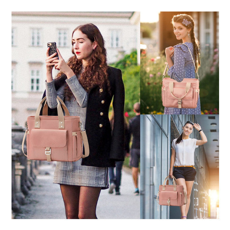 Pink Spacious Insulated Lunch Bag - Wide Open Design, Removable Strap, Side Water Bottle Pockets - Perfect for Work, Picnic & Travel
