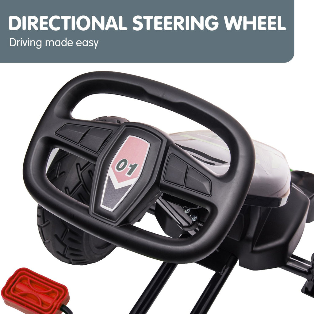 Take your outdoor-loving kid on racing adventures with this beautiful G18 Pedal Go Kart! Featuring a strongly built frame, modern design and cool racing decals, your kid will ride in style.