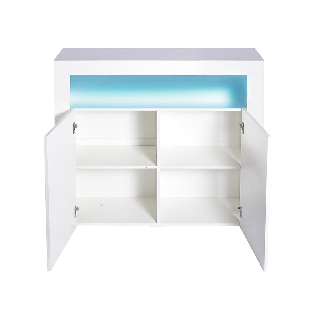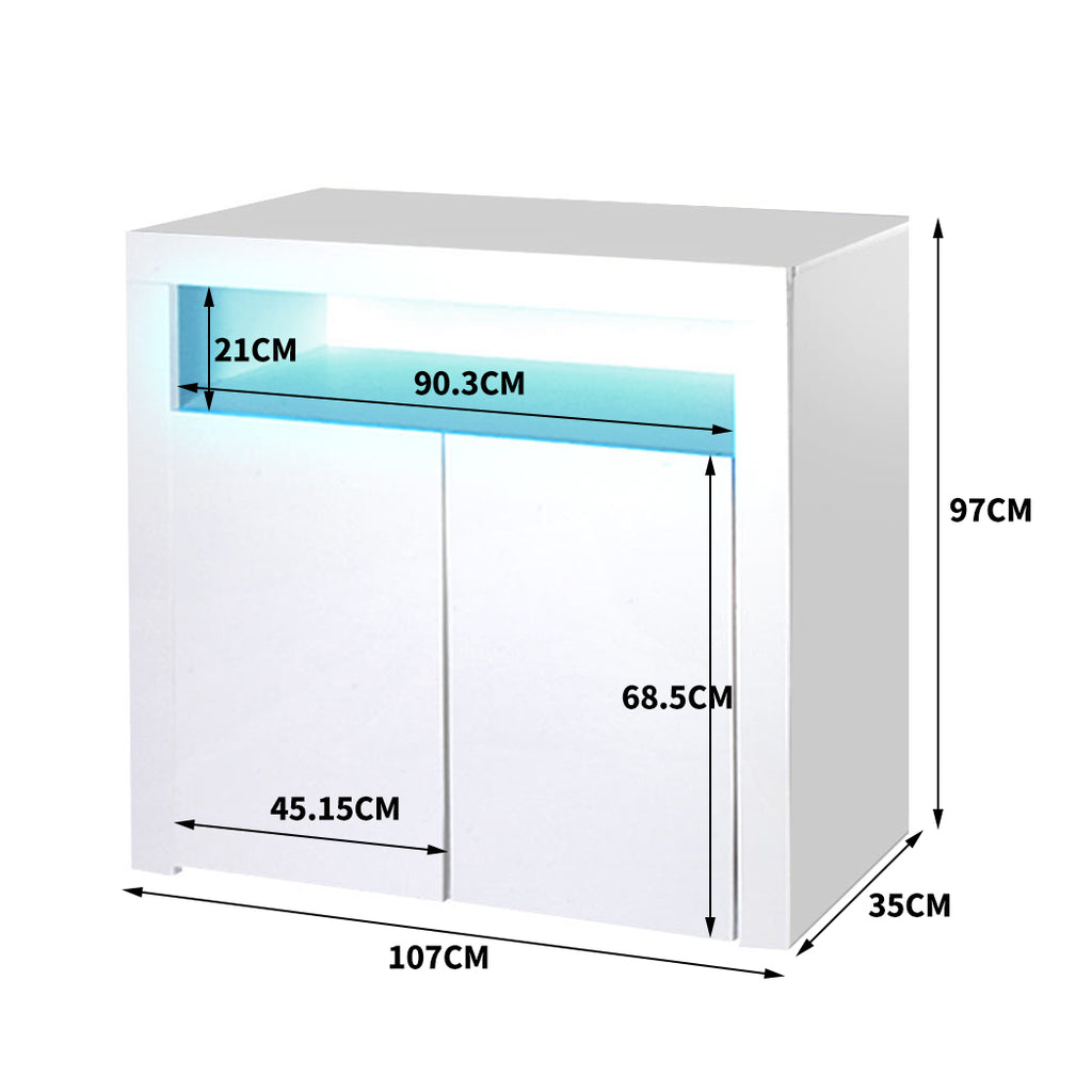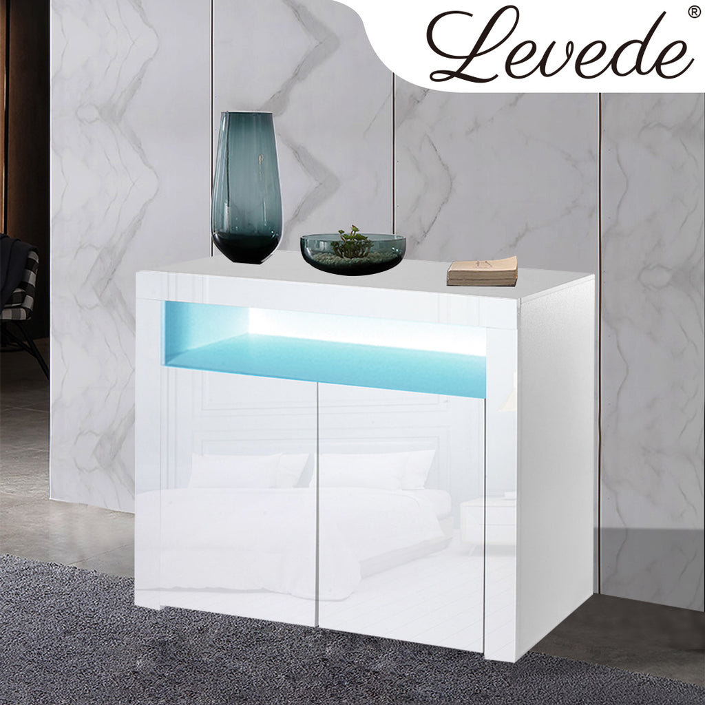 Levede Buffet Sideboard creates extra storage space yet equipped with any interior. Constructed with environmentally friendly particle board, its durable and sturdy without any toxic smell. Perfect showcase to store your books and other daily necessities, keeping your house free from mess. Customisable LED light to lighten up your world with romance. High gloss finish allows a shiny light reflection lead to a bigger space perspective. Finger pull handle design for easy door opening. Safe round corner with anti-scratch feet provide a better ambiance for those family who has babies.