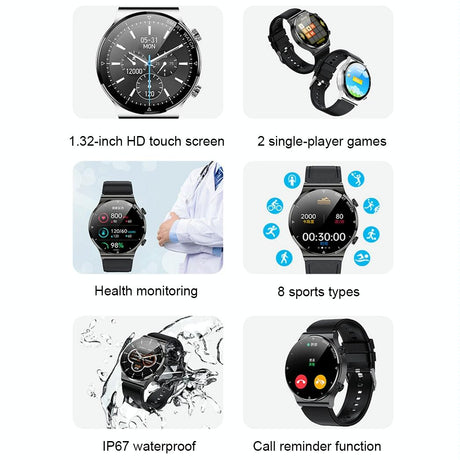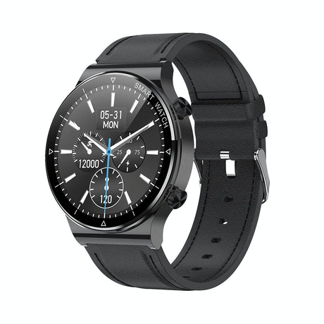 1.32 Inch Heart Rate Sleep Monitoring Smart Watch - Black Leather