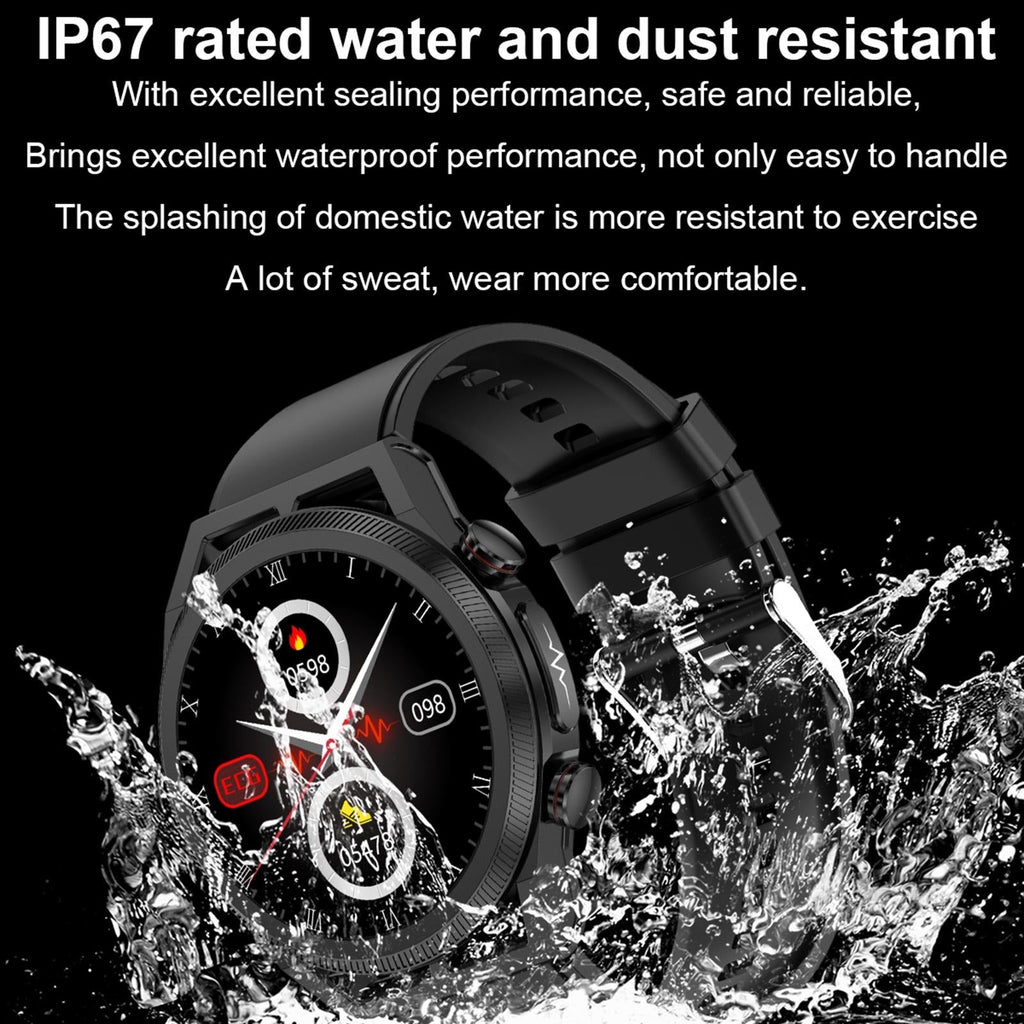 1.39 Inch Ips Screen Ip67 Waterproof Leather Band Smart Watch Support Body Temperature Monitoring / Ecg - Black