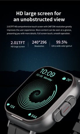 • Stunning 2.01-inch HD Touch Display: Enjoy a crystal-clear and responsive visual experience on the large 240x296 resolution TFT screen. Navigate menus, view notifications, and track your stats with ease. Full touch screen operation with physical button controls.