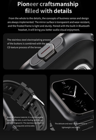 • High-Quality Wireless Earbuds: Enjoy crisp audio with Bluetooth 5.3 (AD6973D4 chip) for stable connection and low latency. Conveniently stored and charged inside the watch.
