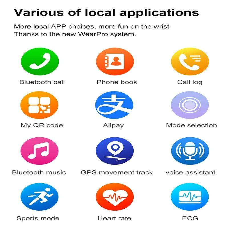 • NFC access control, heart rate monitoring, blood pressure monitoring, and blood oxygen monitoring