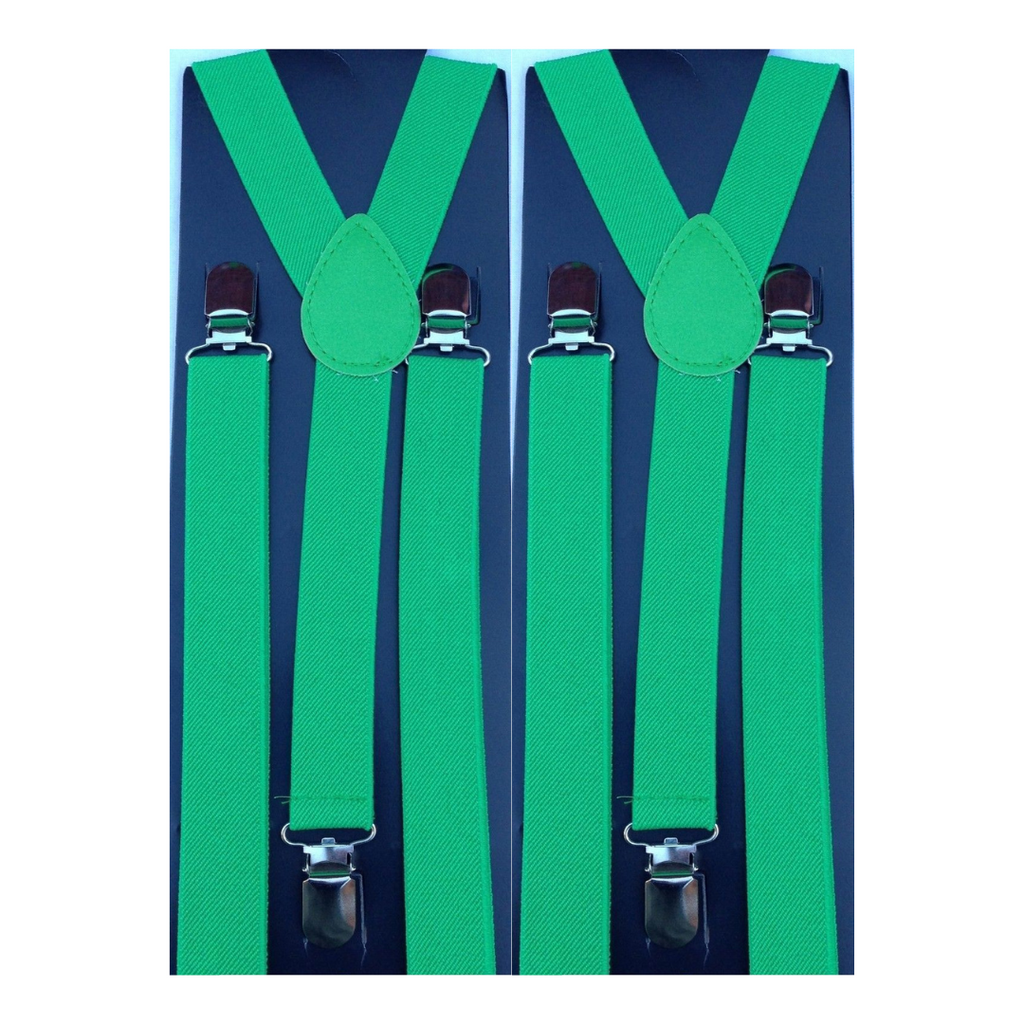 2x Mens Suspenders Braces Adjustable Strong Clip On Elastic Formal Wedding Slim - Green