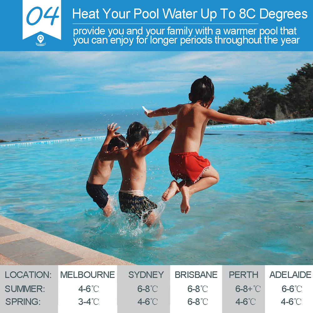 This amazing energy-saving accessory transfers heat from the sun into your pool water and prevents that heat from escaping.