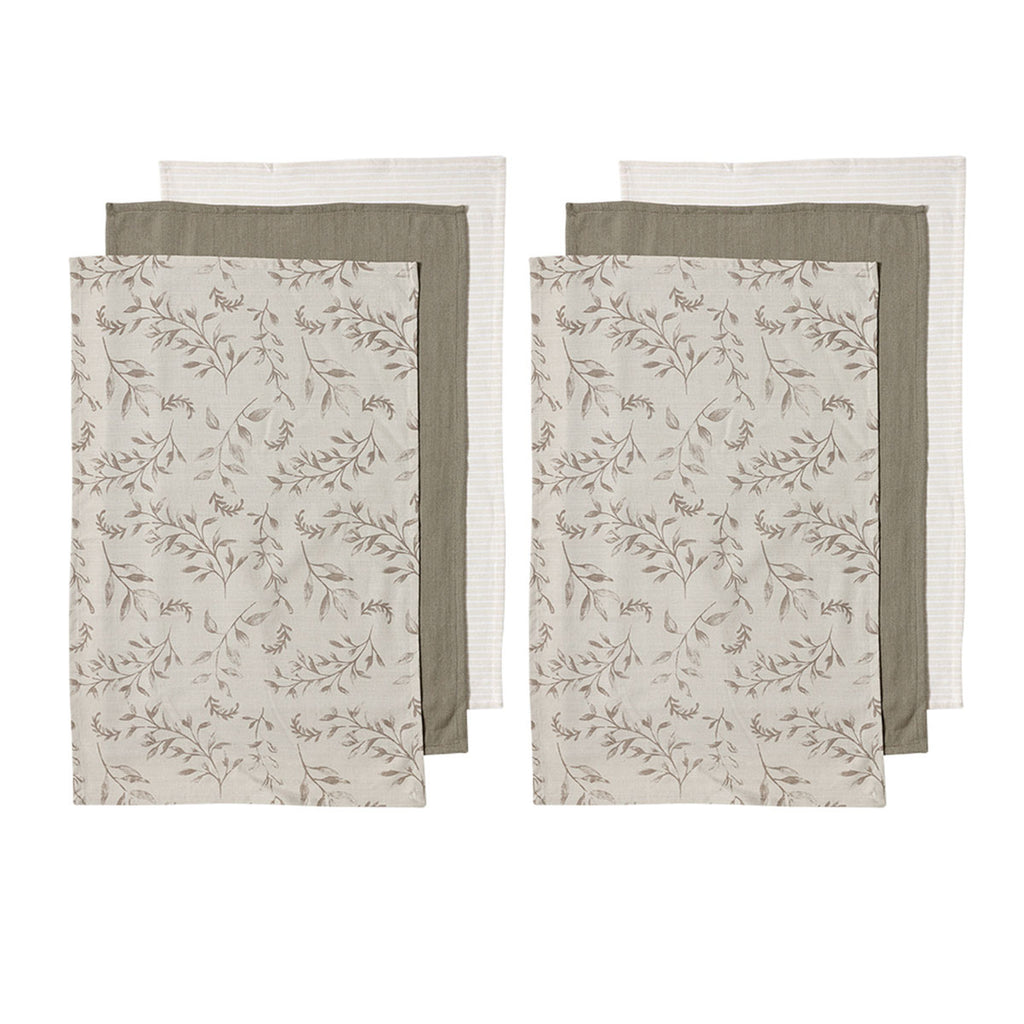 Ladelle Grown Ivy Set of 6 Cotton Kitchen Towels Taupe